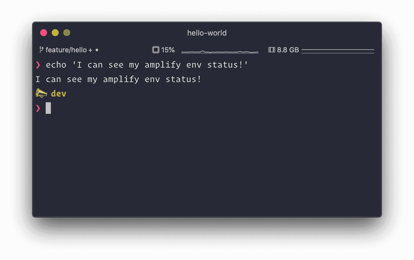 amplify push to prod and started enhancing an existing Lambda Function and you want to test new changes in dev. But you forget to amplify env checkout dev and instead amplify push to prod by accident and now your users are angry because you didn't bother to check the current env.The 3rd point probably wouldn't happen but why not constantly keep track of your background env in the command-line prompt to be more efficient and lower the risk of messing up? I already keep track of my git branches in the command-line prompt, so I might as well add amplify into the mix.